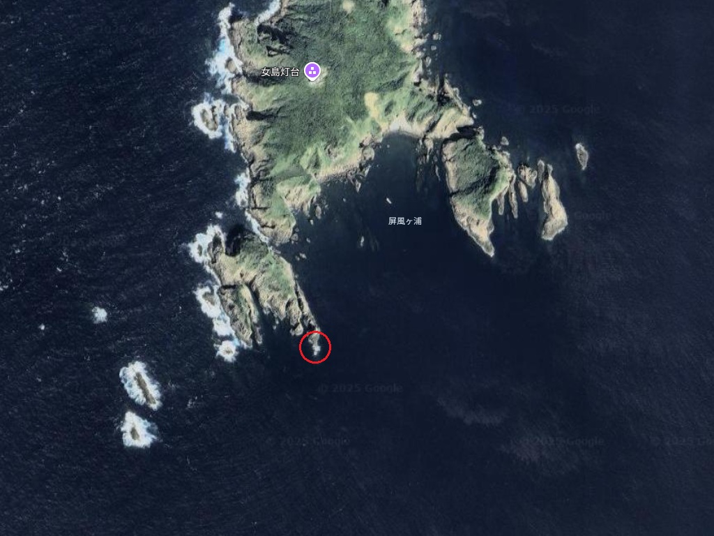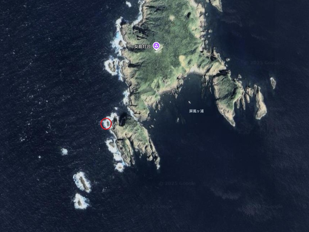 左に下の赤瀬や二重鼻?などがあり、右には女島のスベリやガメ瀬が見えます。