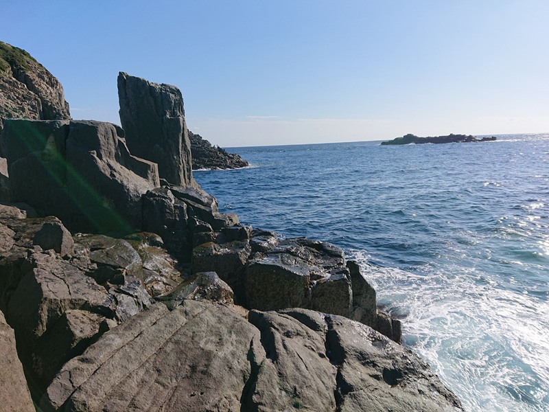 正面は岬状に突き出ていますが、波を被っており行けそうにありません。