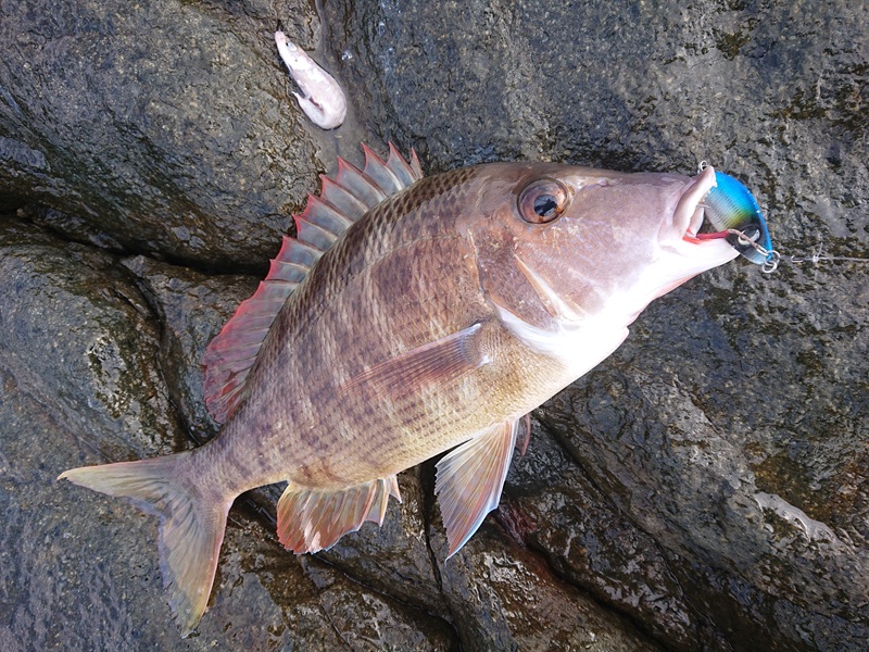 意外なゲストでナンヨウカイワリもフカセで釣れました。