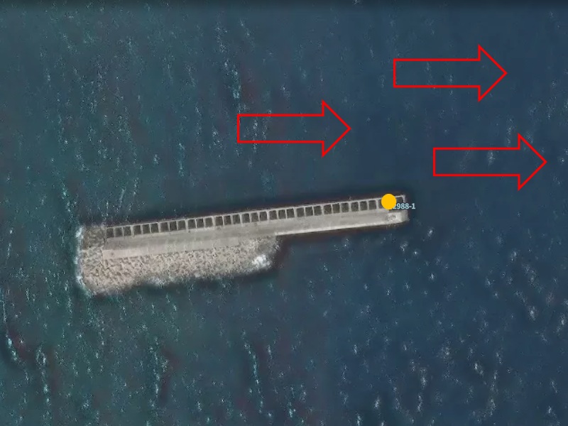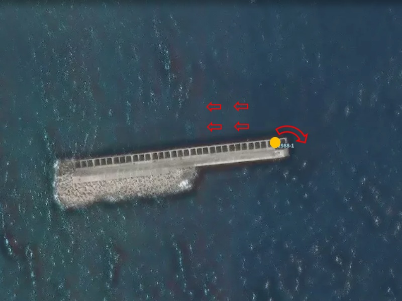 潮が速く堤防の先端を回り込みながら沖(釣り座から右)へどんどん流されていきます。