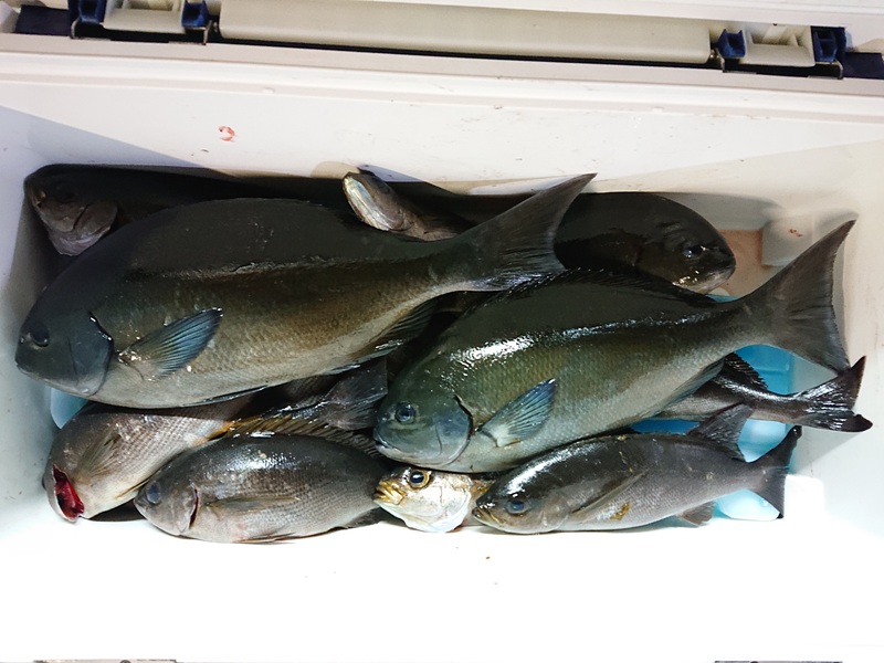 大型の口太グレは今回は出会えませんでしたが、尾長の鋭い引きを楽しんだり、イサキの中からグレを引き出す試行錯誤などが出来て楽しかったです。